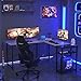 【What You get】 L shaped desk comes with led lights, keyboard tray, headphone hook, storage bag, top hutch, extra long desk that can hold 3 monitors, 2 storage shelves and CPU stand. Gaming desk could hold 2 desktop computers and 1 notebook computer. An ideal desk for small rooms to create excellent home office space.