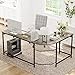 [Modern L-Shaped Computer Desk] This desk is composed of a clean line and is perfectly accented with an elegant black steel frame for a contemporary look in your space. It is the perfect addition to your study room, bedroom, or office, to serve as a computer desk, office workstation, study table, writing, or gaming desk.