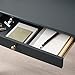 HIDDEN STORAGE Stay focused with a clean, organized desktop. Two drawers with push-to-open slide mechanism provide additional storage capacity for stashing and organizing magazines, accessories, pens, papers, and other office supplies and living essentials concealed and out of sight