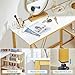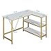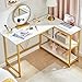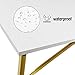 MODERN SIMPLE STYLE DESIGN: Desk is made of thick Particle board with scratch-resistant, anti-collision and waterproof, protect home office desk surface from daily wear and tear,White desktop match gold metal frame ,with storage bag and Headphone hook (BOTH REMOVABLE ) .