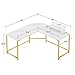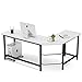 [L-SHAPED CORNER DESIGN] - wide faux marble desktop & space saving, you will have plenty of surface space for writing, computer work and other home office activities