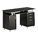 Features two side storage drawers with metal drawer glides and flip down central drawer front with internal keyboard tray