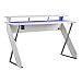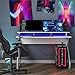 Made of painted MDF with powder-coated metal legs, the white finish pairs with the RGB lights for a contemporary look