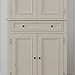 2 large storage areas behind both the upper and lower framed doors, featuring two fully adjustable shelves in each area.