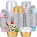 Package Content: you will receive 150 pieces of disposable ramekins cups with lids in four colors, including 40 pieces in gold, 40 pieces in silver, 35 pieces in pink, and 35 pieces in coral blue, with 150 plastic clear lids for your cakes, adding a beautiful and sophisticated look to your muffins or cupcakes