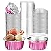 Reliable Material: the cup cake baking cup is made of thickened aluminum foil with plastic lids, no odor and safe, featuring a smooth surface, lightweight and faster heating, slightly waterproof and oil proof; It can hold chocolate cake, muffins, pudding, cupcakes, cheesecake and other desserts