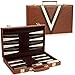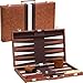TAKE YOUR BACKGAMMON GAME ANYWHERE: Everything is tucked away in the designated areas and the game folds up into a sleek briefcase style with brass colored buckles and a handle for easy transport - one of the best travel backgammon sets for adults!
