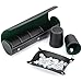 Complete Accessories: 2 sets of 25 mm wood checkers, 2 sets of 15 mm precision dices, 1 doubling cube, and 2 black leather dice cups made to fit in the special compartment.
