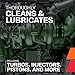 CLEANS AND LUBRICATES: Treats turbos, fuel injectors, pistons, and combustion chamber components