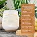 FEATURES: A hand-crafted ceramic cover with a stone-smooth finish set on a beautiful wood-like base. The essential oil diffuser produces a calming, aromatic mist that covers large rooms up to 300 sq. ft. of space and has a water capacity of 150 ml.
