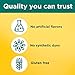 Guaranteed to meet our high quality standards. Made from carefully selected ingredients under strict manufacturing processes. No Artificial Flavors - Natural Fruit Flavors, No Synthetic Dyes - Colors Derived from Natural Sources, Gluten Free.