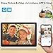 【Quality Visual Experience】Feature with 1280*800 high-resolution, the WiFi photo frame offers you rich and vibrant colors photos & smooth fast videos from any angle. The touch screen makes it easy set up the frame. Screen Brightness and sleep mode can be adjusted in settings as you need.