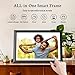 【More Than A Picture Frame】Built-in motion sensor will shut down the frame when the room is empty for energy saving. Enhanced dual speakers can deliver you superb sound effect. Integrated with multi-functionality (music/weather/alarm/calendar…), a smart frame will become a source of entertainment for the whole family.