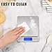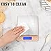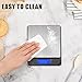 STAINLESS STEEL MATERIAL- The food-grade stainless-steel platform is durable and safe, allowing you to measure food with ease. The surface is treated with a brushing process, much smoother, easy to clean and maintain with tissue or a damp cloth. Waterproof, the stainless steel scale face can withstand liquid spills without damage, easy to measure liquids, and wipe away limescale. Please do not put the small scale directly into water or rinse it.
