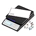 Equipped with a quality beam load cell. Factory multiple key points calibrated and tested. User accessible external calibration feature. Scratch-resistant rubber coated weighing pan with a built-in foldable mail stand. Impact-resistant ABS housing made of new plastic particles. 2-1/2” easy-to-read backlit LCD. Power source: 3x 1.5V AAA alkaline battery (not included) or AC adapter (included).