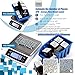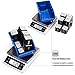 Front and back dual backlit LCD. Durable wide stainless steel weighing pan convertible to a tray for carrying small size items. Impact resistant ABS housing made of new plastic particles. Equipped with a quality beam load cell and extra metal plates for even weight distribution and better precision. Factory multiple key points calibrated and tested. User accessible external calibration feature. Power source: 3x 1.5V AA alkaline battery (not included) or AC adapter (included).
