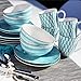 UNIQUE DESIGNS: 24-piece round porcelain dinnerware set with attractive designs for 6. Includes 6 of each: 10.2-inch dinner plate, 8.1-inch salad plate, 8-inch soup pasta bowl, and 12oz mug
