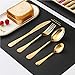 24 piece gold silverware set: Includes 6 each dinner spoon, dinner fork, dinner knife, teaspoon, packaged in a nice gift box, perfect gift for Housewarming, Thanksgiving, Christmas