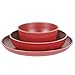 CARE INSTRUCTIONS: beautiful red and black dishes that are also dishwasher and microwave safe