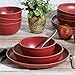 BISTRO-INSPIRED DESIGNS: Red rims accentuate the graceful contours of each piece to set the mood and table in a classic French-inspired fashion