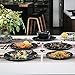 STACK EVENTLY & SAVE SPACE: Easily stackable to storage efficiently and save space on your table and cabinet, no matter how many pieces you buy, you can stack them together to save cupboard space without toppling risk. The color Ink dinnerware sets are freezer, dishwasher safe and oven safe, easy to clean, but can’t be put into microwave.