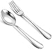 CLASSY AND COMFORTABLE HANDLE: This smooth and comfortable silverware set provides a good grasp for both adults and older children. It has the right weight and length that makes it be the most handy one to hold.