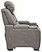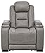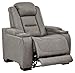 MODERN RECLINER: Put yourself in the driver’s seat with this power reclining chair with leather seating inspired by sports car interiors and a fully loaded set of tech features