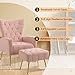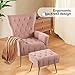 【Solid Wood Frame & Velvet Upholstery】The internal structure of the bedroom chair is a solid wood frame, which has been tested for 300 pounds of load-bearing to ensure safety and solidity. The upholstery of the chair with arms is made of high resilience soft foam with a thickness to give you a comfortable sitting experience.