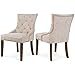 Set of 2 enticing nailhead trim dining chair, tan-colored linen and cotton fabric upholstery on the seat and chair back.