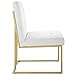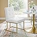 TUFTED DETAIL - Appearing both elegant and strikingly bold, this dining side chair features classic biscuit tufting and modernizes the sled base with its geometric gold stainless steel frame