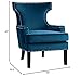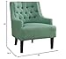 Teal textured fabric upholstery over a solid wood and plywood frame with brown finish pine wood legs