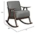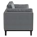 Gray textured fabric upholstery over a solid pine wood and plywood frame with dark brown finish pine wood legs