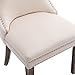 Set of 2 enticing nailhead trim dining chair, tan-colored linen and cotton fabric upholstery on the seat and chair back.