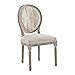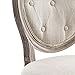 FINE UPHOLSTERY - Upholstered in polyester fabric, the Louis XIV style chair adds distinction around a table. Quilted detail and timeless button tufting are a luxe complement to the weathered frame