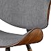 Mid Century Modern design features comfortable curved padded seat and seat back, walnut veneer on bentwood frame, metal back support bar