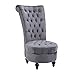 EMBELLISHED ACCENTS: This armless accent chair is full of character from its high button-tufted backrest all the way down to its four orbicular, solid wood feet and plush round ottoman seat in between.