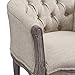 FINE UPHOLSTERY - Upholstered in polyester fabric, this Parisian styled chair adds distinction around a dining table. Magnificent detail and button tufting are a luxe complement to the rustic frame