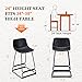 🏀Dimension: Seat height: 24 ”,Base: length 17.3” x width 17.3”, Seat: length 15.8” x width 16.5” x height 11”, Weight capacity: 300 LBS, Shape: rectangle, Materials: leather seat and iron legs. Fits table from 34”-38” height.