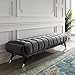 SUPERIOR CONSTRUCTION - Built to endure everyday use, this sturdy, durable accent bench sits atop splayed black birch wood frame with non-marking alloy foot sleeves protect your floors