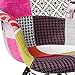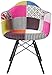 Multi-pattern upholstery Made from hand stitched weave wool. Dark black wooden dowel legs w/ floor protectors for sensitive flooring.