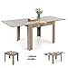 【Durable Construction & Space-Saving Table】Our foldable kitchen table (load capacity: 300lbs) is made of Premium MDF material and the chairs are made of solid wood (load capacity: 400lbs). This expandable folding dining table has prereserved holes under the table top, hidden studs and Magnetic suction design on the cabinet door. The hidden storage open shelf and the drawer can be used to put some dishes and other miscellaneous items to make your room more neat.