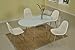 Finishing : Glossy White MDF frame base and White Glass Tempered top. The extension is in glossy white lacquer. Metal is in Brushed Stainless steel.