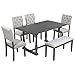 [Family Dining Room Set for 6 People] - This set of tableware includes 1 table, 4 matching chairs and 1 bench. The design is practical and compact, which can comfortably fit into your space and fully accommodate you and your family. The design takes into account the sense of use and comfort. The spacious desktop is conducive to your placement of fruit bowls, vases, candles, etc., and it won't be crowded.