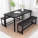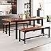 [Space-Saving Design Dining Table Bench Set] 3-piece kitchen table set with a table (43.3''L*23.6''W*28.5''H) and 2 ergonomic wood benches (38.6''L*11.8''W *17.5''H), the perfect compact size of the breakfast table set doesn't take up much space, the wood bench can be placed under the kitchen table when not in use, and there is no risk of tripping over the bench legs when preparing meals.