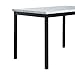 Table top is laminated with paper faux marble print and coated by protective coating
