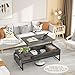 【Coffee Table with Spacious Storage】Sturdy 2 tier shelf provides enough space for display and storage. A Large hidden compartment beneath the tabletop will help you organize your workspace, laptop, remote controllers, game controllers, and other suchlike handy yet out-of-sight when not in use; The other opened shelf is better for storing snacks, magazines,books and anything you need every day