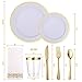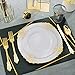 【HEALTH AND QUALITY】Dinnerware Set is safe for you and your guests!Our Gold Rim disposable plates are made of 100% food grade plastic,BPA free.The high-quality dinner plates and salad plates offers reliable strength and durability,ensure won't scratch or break easily.