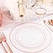 【CONVENIENT & RECYCLABLE】The rose gold plates’ disposable design allows you to save time cleaning after the party is over, which will leave more time for more valuable things, or if you think these rose gold rimmed clear plastic plates are too fine to throw away, then you can clean them and continue using them at your next party.