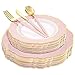 CELEBRATE MUST-HAVE ITEMS:All made of food grade plastic, BPA free, non-toxic.These high-quality pink with gold rim plates are combined with two-section of rotatable gold plastic silverware is a match made in heaven.It is a must-have fashion item for parties!