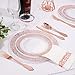 High Quality :Rose Gold Dinnerware Set is safe for you and your guests! Disposable dinnerware set is made of 100% food-grade plastic, BPA free. The Heavy Duty dinner plates and salad plates offer reliable strength and durability, ensure won't scratch or break easily.